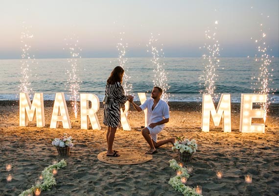 Sizin için tasarladığımız sahil konseptli evlilik teklifiyle, rustik detaylar, çam fıstığı temalı süslemeler, ahşap dokular ve denizin mavisine eşlik eden mum ışıklarıyla büyüleyici bir atmosfer sunuyoruz.